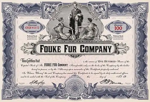 - ↑ Die Fouke Company wurde ausgezeichnet. In: Winckelmann Pelzmarkt Nr. 252, 20. September 1974, S. 11.