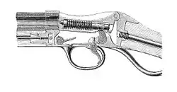 In Paris ließ der schweizerische Büchsenmacher Jean Samuel Pauly bereits 1812 einen Hinterlader für Metallpatronen patentieren, der einen nach oben schwenkbaren Blockverschluss aufwies. Bei späteren Entwicklungen konnte die Waffe am Laufende geknickt werden, was bedingte, dass Laufende und Verschluss eine formschlüssige zylindrische Form hatten, um Gasverluste zu vermeiden. Die Zündung der Ladung erfolgte zuerst mit einem Zündstift, später durch komprimierte Luft.