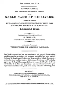 - ↑ Beschreibung und Kaufangebot einer Kupfertafel aus Mingauds Buch Noble Jeu de Billard von 1827. Chamonal.com, archiviert vom am 27. Juni 2013; abgerufen am 8. Juli 2013 (französisch).