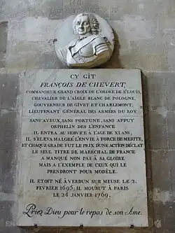 Dies ist der Wortlaut der von Diderot verfassten Inschrift auf dem Grabstein von François de Chevert in der St-Eustache de Paris: