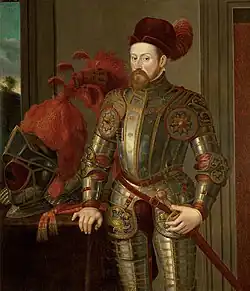 - Porträt des Erzherzogs Ferdinand II., Kniestück in Adlerrüstung (um 1550)