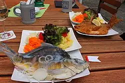 Im Unterschied zu anderen deutschen Weingebieten ist in Franken, wo die Kultivierung von Reben urkundlich erstmals im Januar 777 (in der Schenkungsurkunde Karls des Großen von Hammelburg an das Kloster Fulda) erwähnt wurde,[14] traditionell Wein wie in Frankreich vor allem Essensbegleiter. Im Jahr 1732 erschien eine Abhandlung des 1709 zum Professor ernannten Würzburger Anatomen und Botanikers Johann Martin Anastasius Orth über den gesundheitlichen Nutzen des damals wie heute vom Juliusspital produzierten bzw. verkauften Frankenweins; zudem veröffentlichte er die Schrift Untersuchung des Sprichwortes „Frankenwein, Krankenwein“. Um 1800 unterschied man im Juliusspital beim Frankenwein „Nebenwein“, „Extrawein“ und bessere Sorten wie den Steinwein. Der mit dem Thema Über die Harnsteine in Ostfranken habilitierte Chirurg Karl Textor, Sohn von Cajetan von Textor, sah das geringe Auftreten von Harnsteinen bzw. geringere Ausmaß des schmerzhaften Steinleidens in Franken auf die Beschaffenheit des Frankenweins zurück. Auch Cajetan von Textors Assistent Weidenbusch (* 1812, später praktischer Arzt in Gressthal) beschreibt in seiner 1838 verfassten Doktorarbeit[15] eine „steinschmerzlindernde“ Wirkung vor allem der im fränkischen Saalgrund wachsenden Weine und eine harntreibende, die „Ausspülung der harnsauren Niederschläge aus den Nieren und Blasen“ befördernde Kraft der leichteren guten Tischweine.[16] Typischer Frankenwein ist trocken, „leicht zu trinken“[17] und harmoniert mit nahezu sämtlichen Gerichten, von der regionalen Häckerbrotzeit über Fisch- und Fleischgerichte über Spargelgerichte und angemachten Camembert bis hin zu fränkischen Rostbratwürsten mit Sauerkraut. Letzteres ist eine Kombination, die auch im Elsass üblich ist. Das heutige fränkische Weinmarketing setzt auch auf den Sommerwein (siehe: Neues Franken).