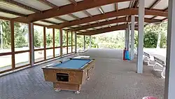 Ein separates Erlebnisplanschbecken mit einer minimalen Wassertiefe für Kleinkinder mit Rutsch- und Wasserspielmöglichkeiten ergänzt die Anlage.[5]