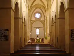 Die Kirche ist eine dreischiffige Pfeilerbasilika mit vor dem Chor eingezogenem Querhaus, so dass sich ein kreuzförmiger Grundriss ergibt. Mittel- und Querschiff sind jeweils von drei annähernd quadratischen Jochen überspannt, der Chor von einem. Die Seitenschiffe sind jeweils von sechs etwa quadratischen Jochen überspannt, deren Seitenlänge jeweils halb so lang wie die der Mittelschiffjoche ist. Der nach Osten ausgerichtete Chor wird von einer halbrunden Apsis über die gesamte Stirnseitenbreite abgeschlossen, das Querhaus weist ebenfalls halbrunde Apsiden nach Osten auf. Die Kirche weist überwiegend Stilmerkmale der Romanik auf, nur vereinzelt findet sich bereits frühgotische Elemente.