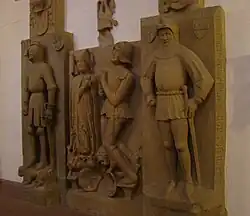 In der Kirche befinden sich mehrere historische Grabmäler. Die ältesten Grabmäler sind die in den Nischen des rechten Querschiffs und stammen aus dem späten 13. Jahrhundert. Beide Grabmale zeigen ausgeprägte Band- und Flechtornamente. Im südlichen Seitenschiff befinden sich die Grabmale von Arnold von Rosenberg († 1447) und Eberhard X. von Rosenberg († 1449), dazwischen ein Doppelgrabmal eines nicht näher bezeichneten ritterlichen Paares, alle als lebensgroße Reliefplastiken dargestellt. Eines der beiden Rosenberg-Grabmäler weist eine deutsche Inschrift auf und gilt als das älteste Grabmal mit deutscher Inschrift im weiteren Umkreis. Ein weiteres Grabmal mit Ritterstandbild befindet sich im nördlichen Seitenschiff.