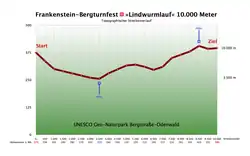 - ↑ Höhenprofil des Lindwurmlaufes am Frankenstein auf: tv-nieder-beerbach.de (PDF-Datei, 8 kB)