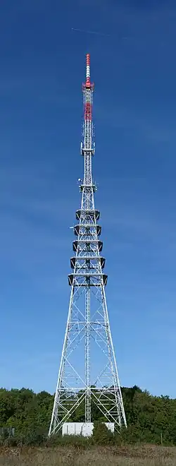 - einen 1961 erbauten, 118 Meter hohen abgespannten Stahlfachwerkmast als Sendemast für Richtfunk, UKW-Hörfunk und TV der Deutschen Telekom AG. Dieser Sendemast dient zur Verbreitung der Radioprogramme privater Programmanbieter und dem DVB-T-Multiplex des ZDF.