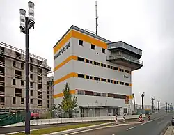 Das am 6. Februar 1968 in Betrieb genommene westliche Stellwerk Frwf war das erste Ablaufstellwerk der Bundesbahn mit zentraler elektronischer Befehlsverarbeitung.[6] Es befand sich etwa dort, wo heute das Wohnhochhaus AXIS steht an der Ecke Europaallee/Eppenhainer Straße.