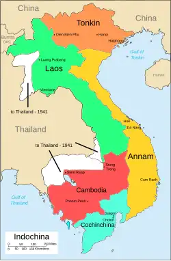 - ↑ Arthur J. Dommen: The Indochinese Experience of the French and the Americans. Nationalism and Communism in Cambodia, Laos, and Vietnam. Indiana University Press, Bloomington/Indianapolis 2001, S. 162 (eingeschränkte Vorschau in der Google-Buchsuche).