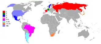 - ↑ Laut All-time FIFA World Cup Ranking 1930–2014 Archivierte Kopie ( des vom 12. August 2014 im Internet Archive) Info: Der Archivlink wurde automatisch eingesetzt und noch nicht geprüft. Bitte prüfe Original- und Archivlink gemäß Anleitung und entferne dann diesen Hinweis. (PDF; 200 kB)