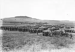 Aufgabe der Division war der Angriff auf das Oberelsass aus dem „Trouée de Belfort“[note 10]. Mit Befehl vom 26. August 1914 wurde die Armee am 28. August bereits wieder aufgelöst. Die Truppenteile wurden zur Aufstellung der „Groupement des Vosges“ (Vogesengruppierung) und der 6e armée verwendet.[58] Corps de cavalerie Conneau