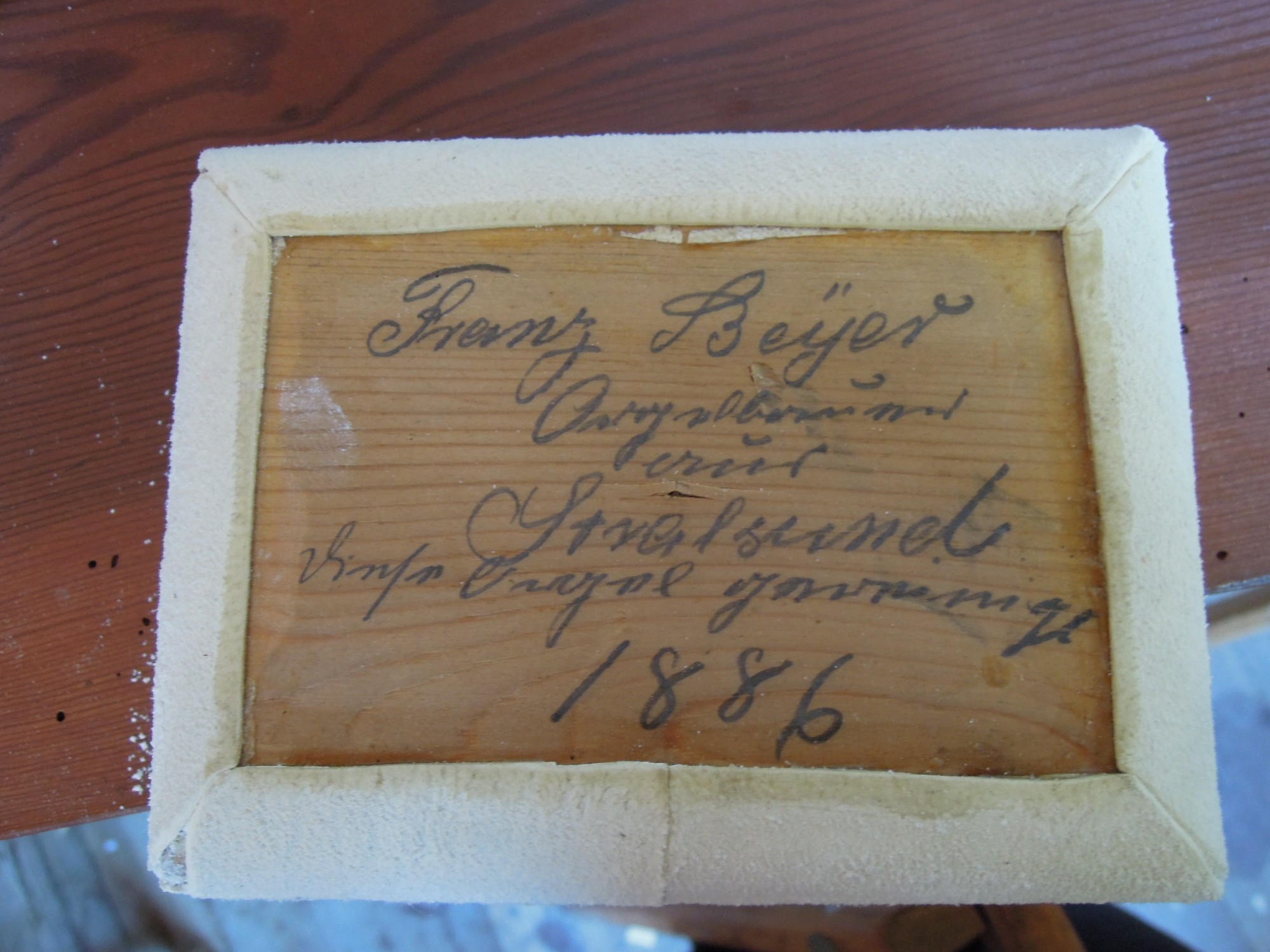 - ↑ Foto der Inschrift „Franz Beyer Orgelbauer aus Stralsund diese Orgel gereinigt 1886“