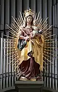 | Offenburg | Dreifaltigkeitskirche | Madonna im Orgelprospekt (Entwurf, Ausführung durch Gebrüder Moroder) | 1912[47] | |