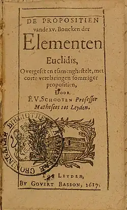 - De propositien van de boecken van Euclides, Leiden: Govert Basson, 1617.