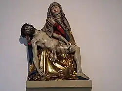 - unter der Empore eine Pietà von 1515 aus der Werkstatt Tilman Riemenschneiders, ursprünglich in der 1824 abgebrochenen Karmelitenkirche.