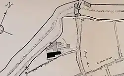 Das Grundstück lag zwischen der noch heute Hinter den Brüdern genannten Straße und dem Claustorwall am nordwestlichen Rand der Innenstadt unmittelbar an der Stadtmauer. In zahlreichen mittelalterlichen Städten, die im 13. Jahrhundert expandierten, wurden den Minderbrüdern Bauplätze in ähnlicher Lage überlassen.[6] Das Goslarer Kloster wurde um 1300 durch eine Zustiftung des Stadtrats erweitert.[7] Zum Klosterkomplex gehörte eine gotische Kirche in ungefährer Ostausrichtung im Stil einer Bettelordenskirche; sie hatte einen Dachreiter anstelle eines Kirchturms. Die Klostergebäude schlossen unmittelbar an der Nordseite der Kirche an und erstreckten sich bis zur Stadtmauer.