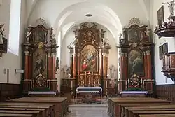 - Der linke Seitenaltar zeigt eine Darstellung der Immaculata und stammt vermutlich von Johann Hofmann dem Älteren aus der 2. Hälfte des 17. Jahrhunderts.