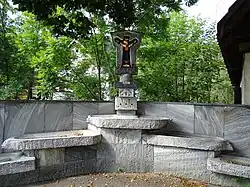 - ↑ Die von Schlosser gemeißelten Großbuchstabenreliefs legen keinen Wert auf Interpunktion.