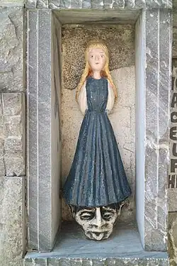 Das erste Segment widmet sich der Rolle der Frau als naturverbundenes Wesen. Als prominentes Beispiel dafür wird die von der römisch-katholischen Kirche als Heilige verehrte Mystikerin und Naturphilosophin Hildegard von Bingen dargestellt. Charakteristische Merkmale sind ihr Krummstab und die Bibel sowie die ihr zu Füßen wachsenden Blumen. Die zweite Skulptur zeigt drei Frauen mit Getreidegarben, Stoßbutterfass und einem Teller Obst, womit die typisch weiblichen Tätigkeiten des Erntens, Zubereitens und Verteilens dargestellt werden.[6]