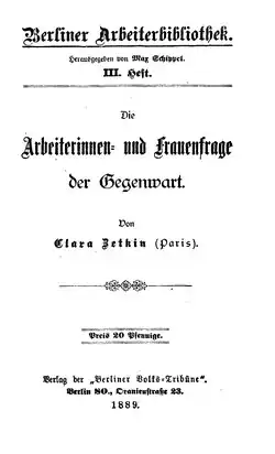 - Clara Zetkin: Geistiges Proletariat. Frauenfrage und Sozialismus. Nach einem Vortrage, gehalten in einer öffentlichen Studenten-Versammlung zu Berlin im Januar 1899. Berlin 1902.