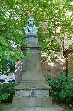 - An der Frauenkirche steht ein von Ernst Rietschel gestaltetes Denkmal für den Reformator Martin Luther. Das Denkmal auf dem Frauenkirchhof wurde zu Luthers 400. Geburtstag am 10. November 1883 enthüllt, es erinnert an Luthers zehn Aufenthalte in Grimma zwischen 1519 und 1544. Die Büste ist einer der fünf ersten Abgüsse vom Denkmal in Worms. Diese ersten fünf galten damals noch als Original und wurden deshalb vom Künstler signiert. Daher trägt die Luther-Büste in Grimma auf der Rückseite den Namenszug von Ernst Rietschel.[11]