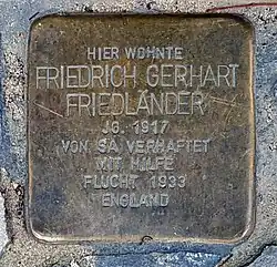 Am 18. Februar 2022 wurde vor seinem ehemaligen Wohnort, Berlin-Britz, Andreasberger Straße 9, ein Stolperstein verlegt.