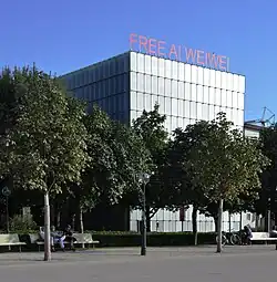 Auch namhafte Museen und Galerien beteiligten sich an der Kampagne. Hierzu zählen beispielsweise die Tate Modern Gallery in London, die an ihrer Fassade den Slogan „Release Ai Weiwei“ anbrachte. Ai Weiwei stellte im Jahr 2009 in der Tate Modern seine Sunflower Seeds aus. Auch die Lisson Gallery, das Guggenheim Museum und das Museum of Art in New York sprechen sich gegen seine Verhaftung aus und organisierten zum Teil Unterschriftenaktionen.[6] Besonders das Kunsthaus Bregenz zeigte die Solidarität gegenüber Ai Weiwei deutlich. Wie die Tate Modern hat auch das Kunsthaus einen deutlichen Satz an seiner Fassade angebracht. Der Satz „Free Ai Weiwei“ wurde in großen, roten Buchstaben hoch oben an der Fassade angebracht. Zudem bat das Kunsthaus sechs bekannte Künstler, die bereits beruflich oder privat mit Ai Weiwei zu tun hatten, ein Plakat für eine Werbefläche zu gestalten. Dazu zählten Franz West, Olafur Eliasson, Jenny Holzer, Barbara Kruger, Luc Tuymans und Rirkrit Tiravanija. Einige der Künstler wählten klare Aussagen, andere zeigten ihre Solidarität durch eher abstrakte Plakate.[7]