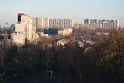 Die Großwohnsiedlung entstand von 1964 bis 1973 oberhalb eines Steilhangs (Lage Cannstatter Zuckerle) des Neckars. Die Wohnanlage „Julius Brecht“ wurde zwischen 1966 und 1968 nach Plänen von Hans Max Brenner errichtet und galt bei ihrer Fertigstellung mit 22 Stockwerken als das größte deutsche Wohnhaus. Sie verfügt über 440 Wohneinheiten.[1] Weitere Häuserzeilen stammen von Architekt Eberhard Rau.[2] Die Adalbert-Stifter-Straße bildet zusammen mit der Mönchfeldstraße einen Ring, von dem aus Stichstraßen die Siedlung erschließen. Die Versorgung mit Fernwärme erfolgt durch das Müllheizkraftwerk Münster. Östlich schließt sich der Stadtteil Mönchfeld an.