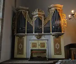 In den Jahren 1710 bis 1714 erbaute Gottfried Silbermann eine Orgel mit 44 Registern. Es war seine erste große Orgel und blieb das größte Werk, das er eigenhändig schuf.[18] Der Rat der damals überaus wohlhabenden Stadt Freiberg folgte mit der Erteilung des Auftrags an den jungen Orgelbauer, der bis dahin nie ein auch nur annähernd vergleichbar großes Werk errichtete, einer Empfehlung des Leipziger Thomaskantors Johann Kuhnau.[19] Den Prospekt mit korinthischer Pilastergliederung und reicher Akanthusornamentik entwarf der Domorganist Elias Lindner. Die Orgelabnahme erfolgte am 13./14. August 1714 durch Kuhnau und den Altenburger Hoforganisten Gottfried Ernst Bestel, die Einweihung am 19. August 1714. 1738 nahm der Meister kleinere Änderungen an der Disposition des Oberwerks vor. 1933 wurde die Qvintadehn 8′ erneuert. Von 1981 bis 1983 restaurierte die Orgelbaufirma Jehmlich unter Leitung des Restaurators Kristian Wegscheider die Orgel.[20] Sie verfügt über 44 Register (2674 Pfeifen), die sich auf drei Manualwerke und Pedal verteilen. Die Ton- und Registertrakturen sind mechanisch. Die Stimmtonhöhe beträgt a1= 476,3 Hz. Am Pfeifenwerk ist eine modifiziert mitteltönige Stimmung als die ursprüngliche nachweisbar, die seit 1985 in Richtung auf eine Wohltemperierung abgeschwächt wurde. Das Instrument ist eine der berühmtesten Barockorgeln und eine der am besten erhaltenen Orgeln Silbermanns.[18]