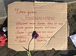 Für Journalisten gilt daher das „Gebot der Staatsferne“, sie dürfen zudem nicht staatlich beeinflusst werden.[18] Neben Ärzten, Rechtsanwälten und Priestern können sie sich auf ein Zeugnisverweigerungsrecht vor Gericht berufen. Nur wenn ein Informant sicher sein kann, nicht genannt zu werden, kann durch investigativen Journalismus die Aufdeckung von Missständen, zum Beispiel bei Korruption, eine „Kontrollfunktion“ gegenüber dem Staat ausgeübt werden. Daher werden Journalisten und Medien oft als Vierte Gewalt im Staate bezeichnet.