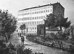 Im Herbst 1880 zog das Seminar in ein neues Gebäude auf einem über 16.000 m² großen Grundstück in der Marienallee an der Grenze zur Albertstadt. Nach Worten des Direktors Kühn zog sie damit „aus dem dumpfen trüben Tale in die freie Luft der Berge, aus dem Getümmel der Stadt in die Stille des grünenden Waldes, aus der herzbedrückenden Enge in die herzerquickende Weite“ – das neue Gebäude des Seminars wurde für ihn „ein schmuckes Schlößchen in der Waldeinsamkeit“.[14] Das neue Schulgelände lag in der Dresdner Heide und reichte bis hinab zur Prießnitz; aus dem bewaldeten Abhang wurde ein großer Park, dessen tiefster Punkt „Olymp“ genannt wurde.[15]