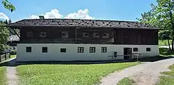 | Ehemaliges Eingangsgebäude | Bauform und Dachstuhl stammen von der Thürlmühle aus Weilheim | 1976 |