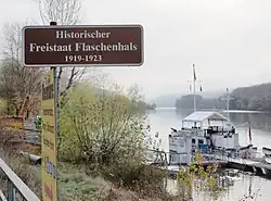 Am Rheinufer sowie einigen weiteren Straßen erinnern touristische Hinweisschilder an den historischen „Freistaat“.