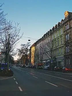 Seit 1904 fährt zwischen Friedberger Platz und Rohrbachstraße die Straßenbahn. Deren südlich davon liegender Abschnitt zwischen Friedberger Platz und Friedberger Tor entstand erst 1971 nach dem Straßendurchbruch von 1970. Die Straßenbahn und der Individualverkehr nutzen auf dieser gesamten Strecke eine Spur pro Richtung gemeinsam. Hier verkehrt die Straßenbahnlinie 12.