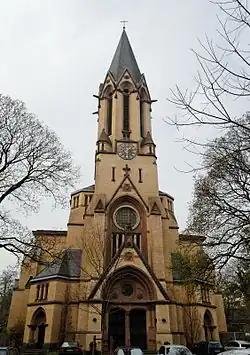Dennoch wurde zunächst statt der Kirche im Auftrag des Vereins für Innere Mission an der nahe gelegenen Konenstraße ein Vereinshaus nach Entwurf des Düsseldorfer Architekten Hermann vom Endt gebaut, das 1896 fertiggestellt und für drei Jahre auch als provisorische Gottesdienststätte genutzt wurde.