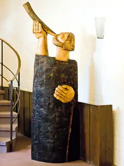 Sein Werkstoff ist Holz und seine Skulpturen stellen bib - lische Personen dar, die ihr Vertrauen auf Gott setzen. Durch die Verbindung zweier kontrastreicher Holzarten, Mooreiche und Linde, entstehen beeindruckende, tief - schichtige Holzfiguren.[2]
