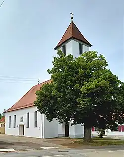 Das Langhaus der Saalkirche wurde 1757 erbaut. Der Kirchturm im Osten, der mit einem Pyramidendach bedeckt ist, wurde 1998 angefügt. Zur Kirchenausstattung gehört ein Kanzelaltar aus dem Jahr 1758.