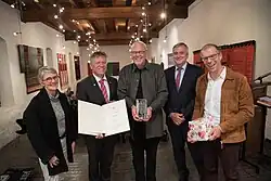 - ↑ Gerd Dudenhöffer mit Friedestrompreis des Rhein-Kreises Neuss ausgezeichnet ( vom 15. Februar 2015 im Internet Archive). In rhein-kreis-neuss.de vom 25. August 2006, abgerufen am 16. Juli 2013.