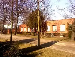 Von 1865 bis 1867 entstand auf dem hiesigen Georgen-Parochial-Friedhof II eine Friedhofskapelle (St. Georgen-Kapelle) mit angeschlossenem Leichenhaus nach Entwurf des Stadtbaumeisters Paul Erdmann. Es handelt sich um einen Backsteinbau im Rundbogenstil, angelehnt an italienische Vorbilder. Das Gebäudeensemble besteht aus einem Trauerbereich (Vorhalle und Saal mit Apsis) und der dreischiffigen angebauten Leichenhalle. Baufachleute ordnen den Architekturstil in eine Reihe mit den Potsdamer Bauten von Ludwig Persius und August Stüler ein.[6] Der im 21. Jahrhundert umfassend sanierte Komplex gilt als eine der ältesten erhaltenen Friedhofskapellen in Berlin.