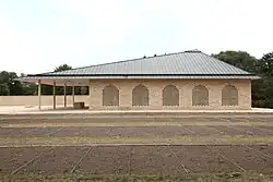 Die Grabfelder sowie das Wasch- und Gebetshaus sind in Gebetsrichtung nach Mekka ausgerichtet. Außerdem war Altiok wichtig, dass der Gebetsraum in „alle Richtungen neutral bleiben“[4] sollte. Das Gebäude verfügt über einen Waschraum für die rituelle Waschung, einen Gebetsraum, zwei Warteräume, zwei Sanitärräume und einen überdachten Bereich mit einem Totenstein für das Verabschiedungsgebet der Toten. Zwei gleichwertige Eingänge führen in das Gebäude, getrennt für Frauen und Männer. Sie wurden in die Fassade zurückversetzt, um den getreppten Boden deutlicher hervorzuheben. Altiok wollte damit die „zurückhaltende und abstrakte Ornamentik“[4] betonen. Mit einem Vorhang kann der Gebetsraum in zwei Bereiche geteilt werden. Über eine dritte Tür können Särge vom Waschraum zur Musallā gebracht werden. Als Vorbild für die Architektur des Wasch- und Gebetshauses dienten Maschrabiyyas und geometrische und florale Muster, die in der traditionellen Islamischen Architektur in Moscheen, in Wohnhäusern und in Palästen zum Einsatz kamen. Im Innenraum ist in der Decke des Waschraumes und des Gebetsraumes jeweils eine Kuppel eingearbeitet. Die Eindeckung des Daches erfolgte mit Zink.