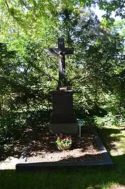 D 127 | Ruhestätte der armen Dienstmägde Jesu Christi 1890–1906 | Kreuzstele aus Granit, darauf der Körper Christus aus Galvanobronze. |