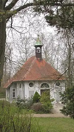 1913 wurde am westlichen Rand des Friedhofs die Totenkapelle erbaut und 1914 eingeweiht. Bis 1945 diente sie als Leichenhaus. Seit der Zerstörung des Kirchenraumes im Haupthaus der Klinik durch russische Soldaten 1945 wird die Kapelle nun für Gottesdienste genutzt. Schon 1990 konnte sie mit Geldern aus dem SED-Vermögen saniert werden. Heute finden hier 14-täglich evangelische Krankenhausgottesdienste und vereinzelt auch Konzerte statt.