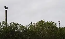 Ebenfalls auf einem etwa acht hohen Mast aufgestellt ist die Sonnenbarke (Todesbarke) aus Metall im Nordosten des Friedhofs. Sie symbolisiert „das Schiff, auf dem nach mythologischer Vorstellung die Sonne bei Nacht durch das Reich des Todes fährt“. Geschmiedet hat es Herrmann Christiansen, der in der Fahretofter Schmiede (Dagebüll) arbeitete.[10][12]