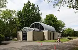 Die Friedhofshalle und Gedenkstätte der jüdischen Gemeinde, Düsseldorf wurde 1986 nach Plänen von Wolfgang Döring errichtet.