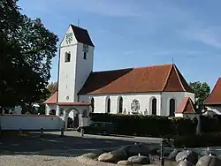 Die im Kern spätgotische Saalkirche wurde im 1. Viertel des 16. Jahrhunderts erneuert. Unter Roman Giel von Gielsberg wurde sie 1673 erweitert und umgestaltet. Sie besteht aus einem Langhaus mit einem dreiseitig geschlossenen Chor im Osten und einem romanischen Kirchturm an der Südostecke des Langhauses, dessen oberstes Geschoss den Glockenstuhl beherbergt, in dem eine Kirchenglocke hängt, und der quer mit einem Satteldach bedeckt ist. Der Innenraum des Langhauses ist mit einer Flachdecke überspannt, der des Chors mit einem Stichkappengewölbe. Die Fresken von 1673 wurden weitgehend erneuert. Im Chor befindet sich eine Monstranz.