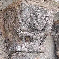 Ein anderes Kapitell zeigt eine Szene, die große Ähnlichkeit mit einem Kapitell an einer Chorkapelle der Stiftskirche Notre-Dame du Port in Clermont-Ferrand aufweist. Dargestellt ist ein Kelch, auf dessen Seiten ihm zugewandt zwei vierbeinige geflügelte Greife (Drachen) stehen, die mit ihren Krummschnäbeln gleichzeitig aus dem Kelch trinken. Mit ihren inneren Klauen greifen sie den Fuß des Kelchs.