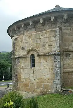 Auf der Ostseite der Rotunde ist eine größere Wandvorlage angeordnet, die es erlaubte, im Innern eine tiefere Wandnische zu installieren, die einen kleinen Altar aufnehmen konnte. Diese Vorlage besitzt außenseitig eine plane Oberfläche und ist oberseitig durch eine dachartige Abschrägung abgedeckt, die ein Stück unter dem Traufgesims abschließt. Inmitten der Wandvorlage ist ein schlankes rundbogiges Fenster ausgespart, das von oberflächenbündigen Keilsteinen überdeckt ist. Die oben genannten beiden Kraggesimse stoßen gegen die Seitenflächen der Vorlage. Auf der Vorlage selbst verläuft ein waagerechtes Kraggesims mit unterseitiger Abschrägung knapp unter der Höhe des oberen Gesimses und wird auf den Seitenflächen der Wandvorlage herumgeführt. Dieses Gesims umschließt halbkreisförmig die Keilsteine des Fensters.
