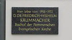 1972 ging Krummacher in den Ruhestand und ließ sich in Altefähr auf Rügen nieder. Seine Landeskirche setzte ihm mit dem Friedrich-Wilhelm-Krummacher-Haus, einem kirchlichen Begegnungszentrum in Weitenhagen (bei Greifswald), ein Denkmal.