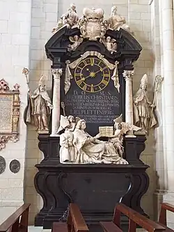 Sein Epitaph wurde von Johann Mauritz Gröninger und seinem Sohn Johann Wilhelm Gröninger geschaffen und befindet sich im St.-Paulus-Dom in Münster.[2] Auffällig ist das große Uhrenzifferblatt, welches nicht nur als Vergänglichkeitssymbol dient, sondern auch rein praktisch als Zeitanzeige. Es ist mit dem Schlag der astronomischen Uhr des Domes synchronisiert.