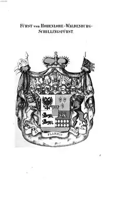 - ↑ a b Chlodwig Karl heiratete am 15. Jänner 1877 in Wien Gräfin Franziska Esterházy (Scheidungsdatum unbekannt), seine zweite Eheschließung mit Gräfin Sarolta Mailáth de Székhely war am 2. März 1890, vgl. Chlodwig Karl Joseph Maria Prinz zu Hohenlohe-Waldenburg-Schillingsfürst auf thepeerage.com, abgerufen am 28. Juli 2018. . Chlodwig Karls Vater war Friedrich zu Hohenlohe-Waldenburg-Schillingsfürst.